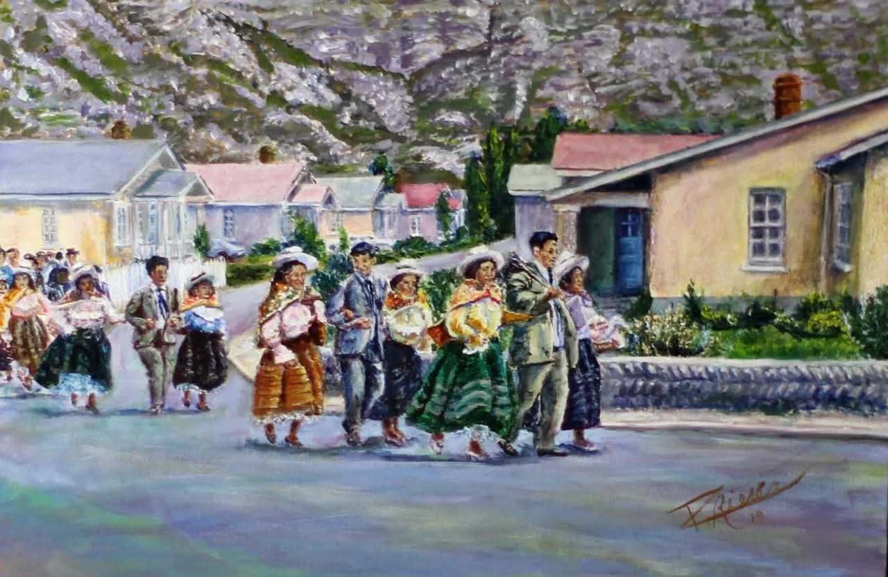 De Chulec al cortamonte. Una pintura de Rocío, que representa el mestizage cultural en La Oroya entre el Ande y lo norteamericano.