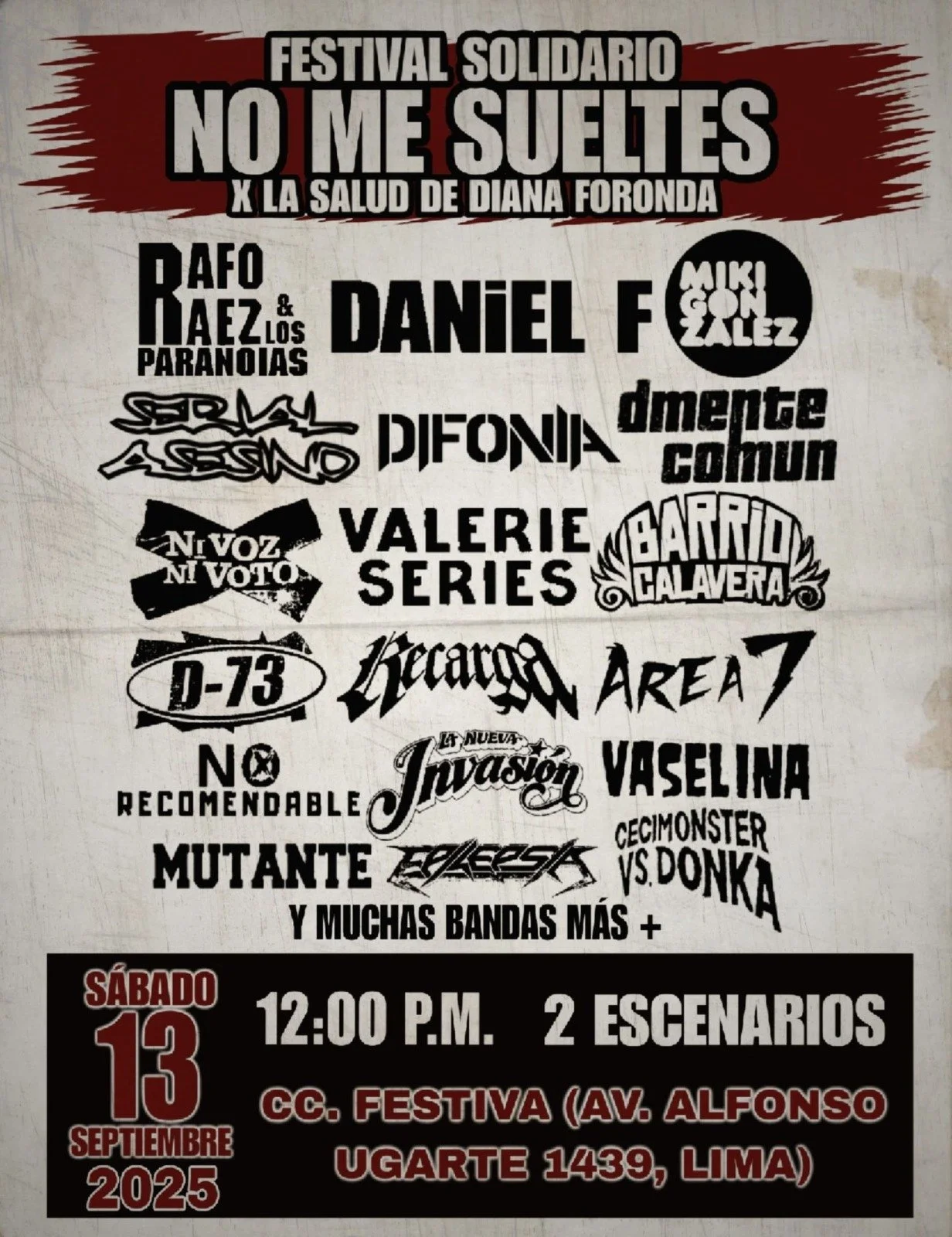 Recordemos que este sábado 13 es el Festival Solidario x Diana Foronda, ESQUINA ROCK sumará con una cobertura a cargo de Wili Jiménez Torres (como reportero) y Renato Pajuelo Zorrilla (fotógrafo), hijo del recordado fotógrafo Daniel Pajuelo, quien por cierto fue amigo de esta casa y colaboró, eficientemente, con la edición física de la revista “Esquina”. ¡Somos Familia!
