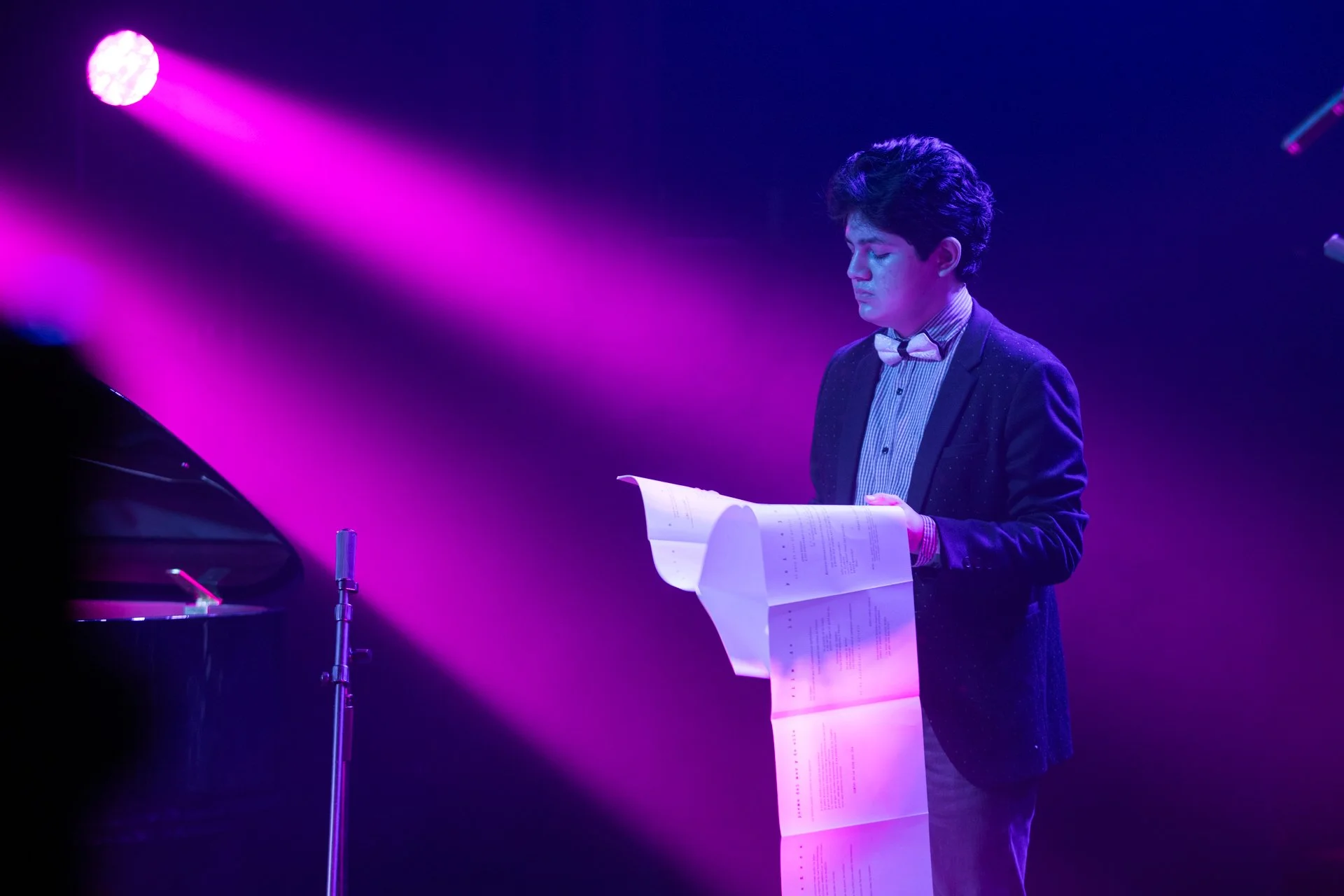 Y como seguir evocando a la madre, maestra de teatro, para la siguiente canción en esta conmemorativa fecha, Rafo pensó en una teatralización. Sobre el escenario anunció un “Obsequio”, presentado como un “pedido de Paul para Carla”, mientras un actor, Braulio Pérez, salía a escena, desplegando un extenso papel. Se trataba de la musicalización, y escenificación, de un poema de “Cinco metros de poemas” de Carlos Oquendo de Amat, escrito hace un siglo. No dudo que esta pieza le hubiera gustado al vanguardista puneño. Como le gustó, Youtube mediante, a @tankediatriba, que hace 6 años, comentó tras chequear el video de esa canción que se la cantaba a su hija “desde que estaba en la barriga de su mamá”. Quizá esa niña se convierta en poeta y Oquendo de Amat comprenda, en la dimensión que habita, que su legado fue tomado de la mejor manera, dándole continuidad.
